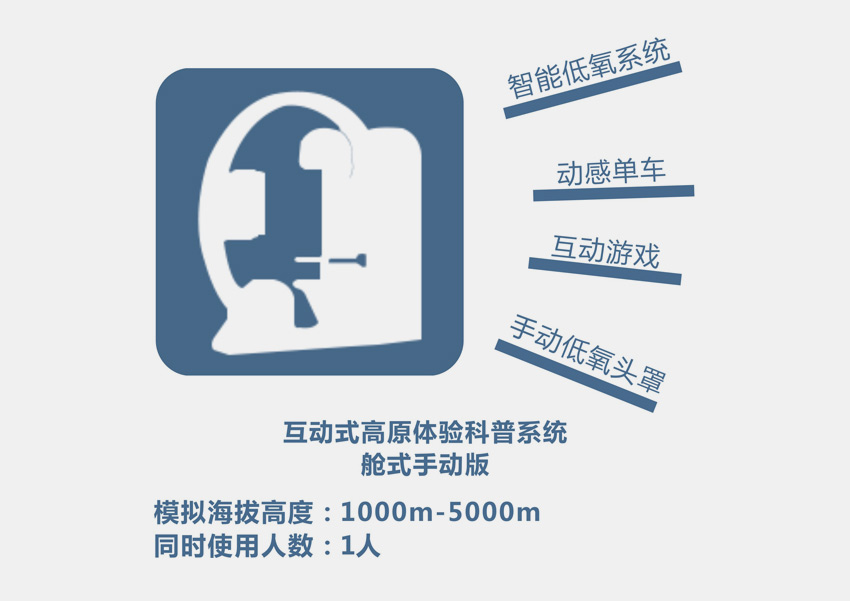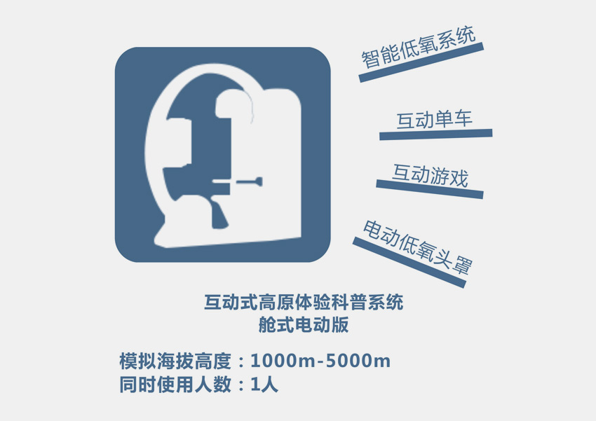 高精度模擬等效海拔高度的低氧環(huán)境,同步展現(xiàn)相對(duì)應(yīng)的人文、地理、動(dòng)植物等科普知識(shí)的音視頻,通過自身感官體驗(yàn)高原環(huán)境,普及高原知識(shí);實(shí)時(shí)展現(xiàn)體驗(yàn)者在不同海拔下的心率、血氧飽和度等生理指標(biāo),通過科學(xué)、安全的方法有效提高高原低氧環(huán)境適應(yīng)能力。